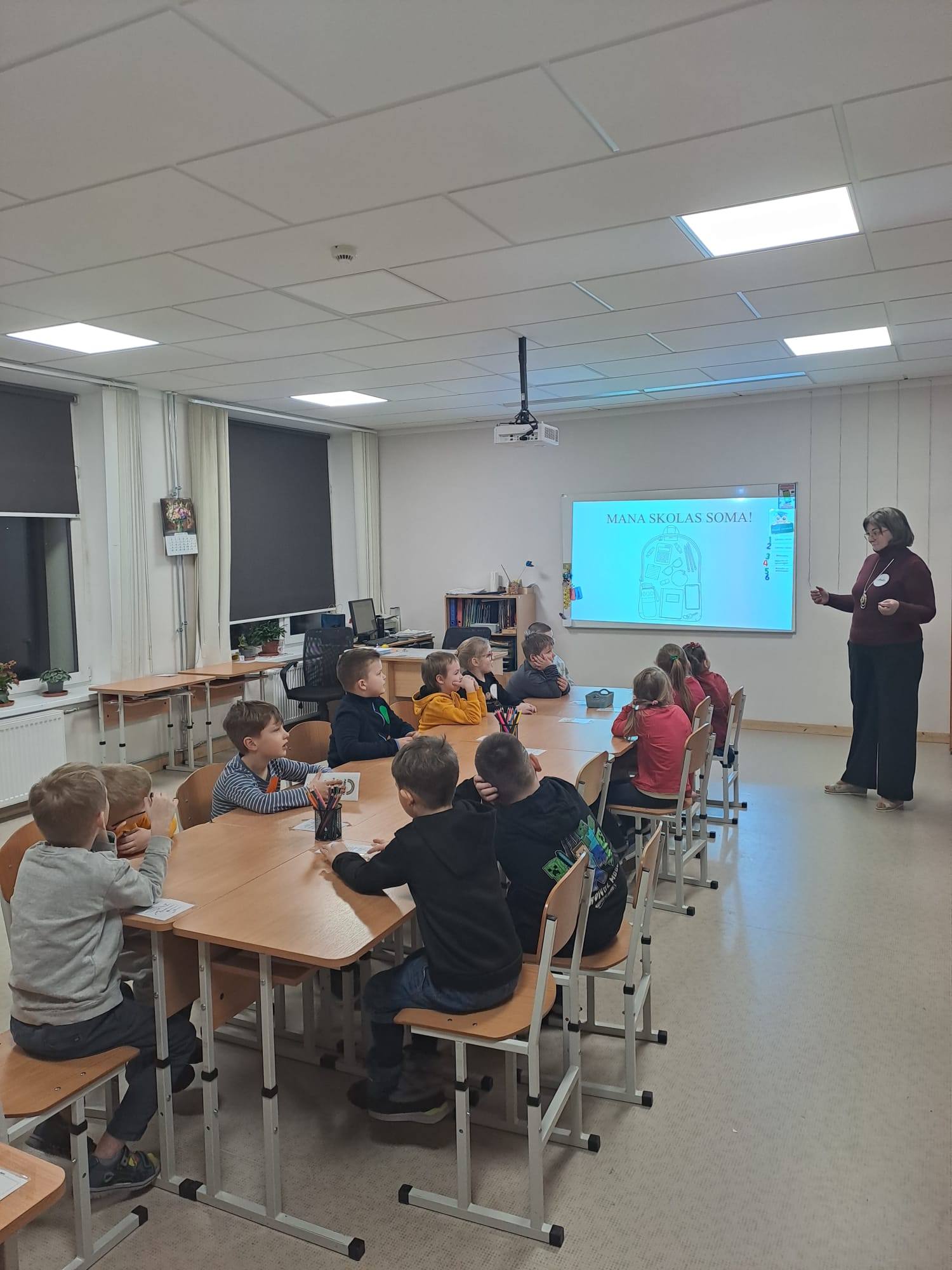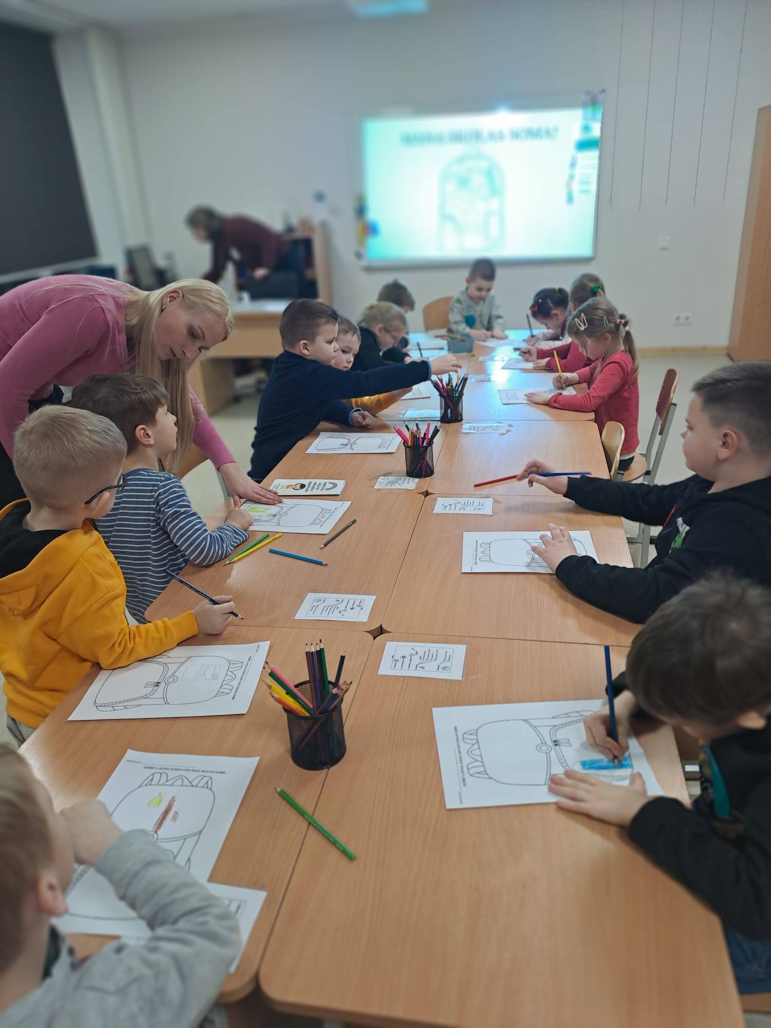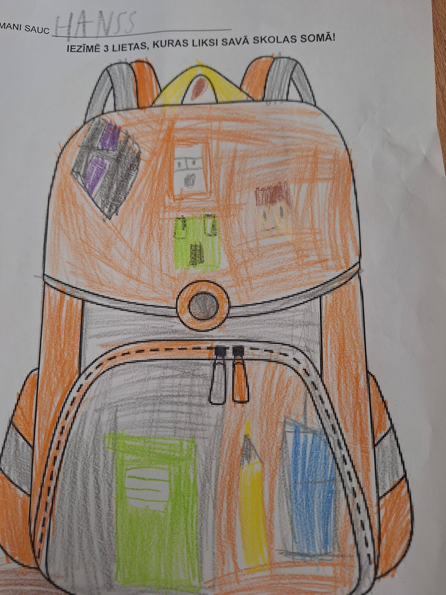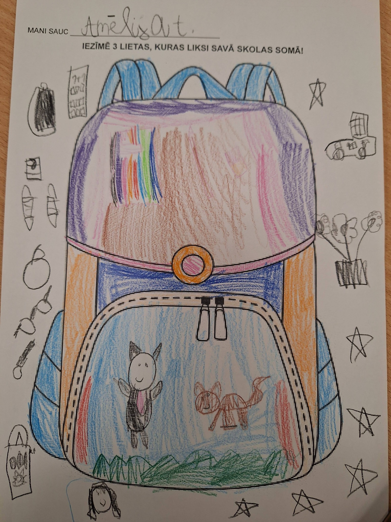 Mazie ciemiņi bija atvērti, zinātkāri un priecīgi iesaistījās piedāvātajās aktivitātēs. Katrs bērns izkrāsoja savu skolas somu darba lapā un iezīmēja trīs, viņaprāt, svarīgākās lietas, kas nepieciešamas skolai.