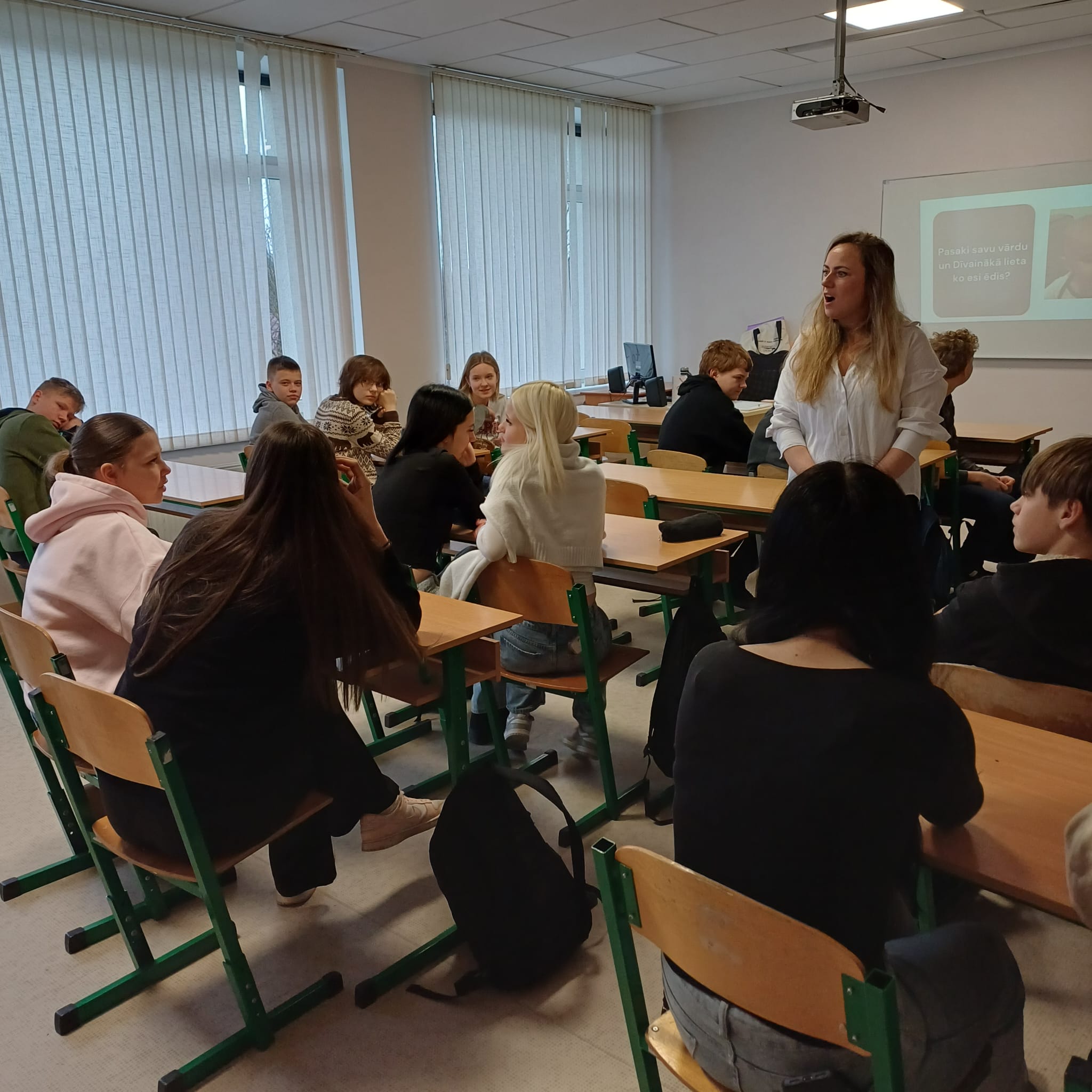 ESF+ projekta Nr.4.2.2.1/1/25/I/001 “STEM un pilsoniskās līdzdalības norises plašākai izglītības pieredzei un karjeras izvēlei” ietvaros 02.03.2026. 8.a un 8.b klasei notika nodarbība “Mācāmies darot: līdzdalība praksē”. Norisi vadīja Kuldīgas jauniešu biedrības Kaktuss pārstāve Ieva Kaltniece.