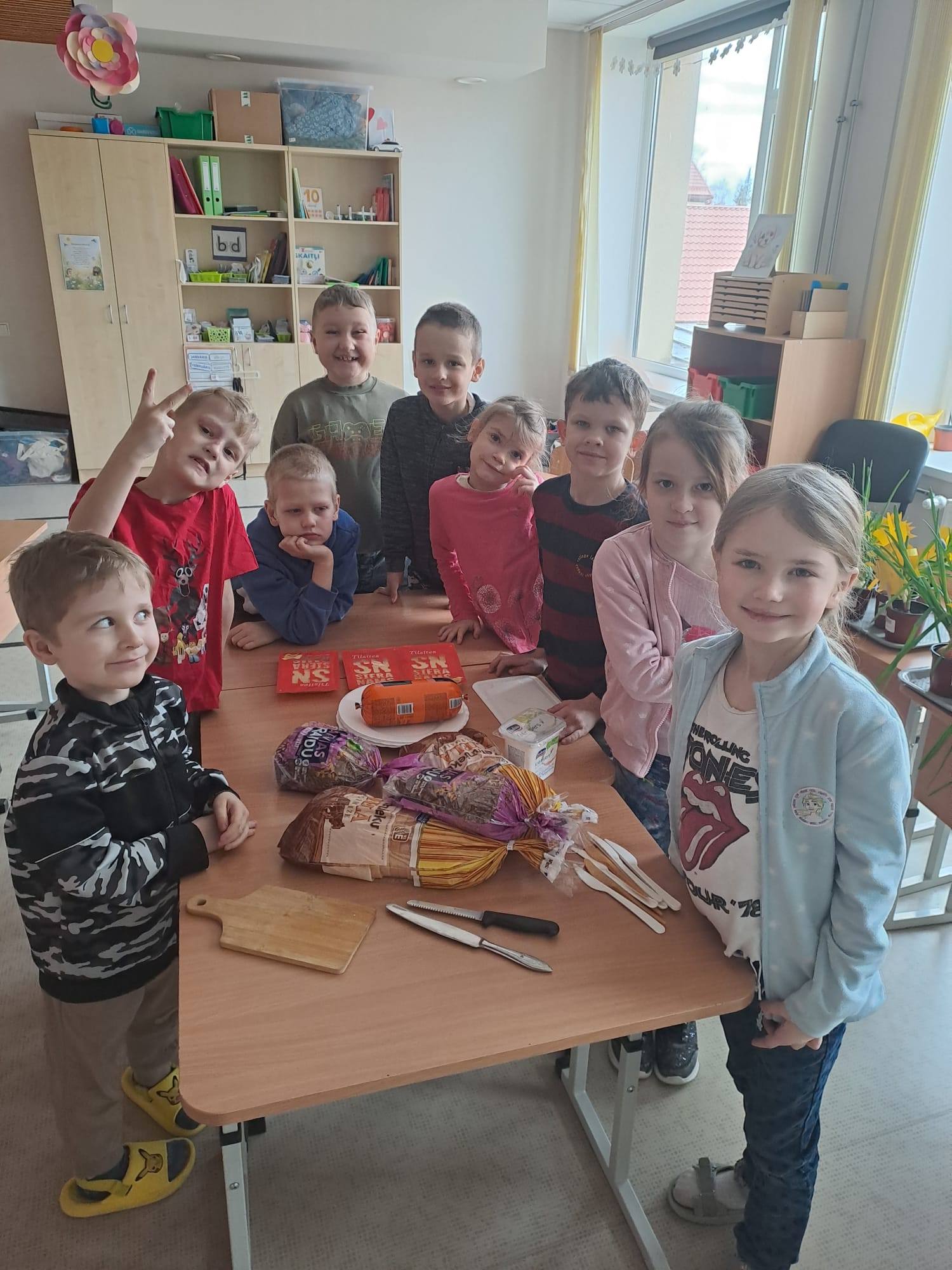 Mūsu pirmsskolas grupas “Saulespuķe” mazie dārznieki šodien svinēja ražas svētkus. Pašu aprūpētie lociņi uz palodzes ir izauguši, tāpēc laiks tos likt lietā! Tapa gardas maizītes.