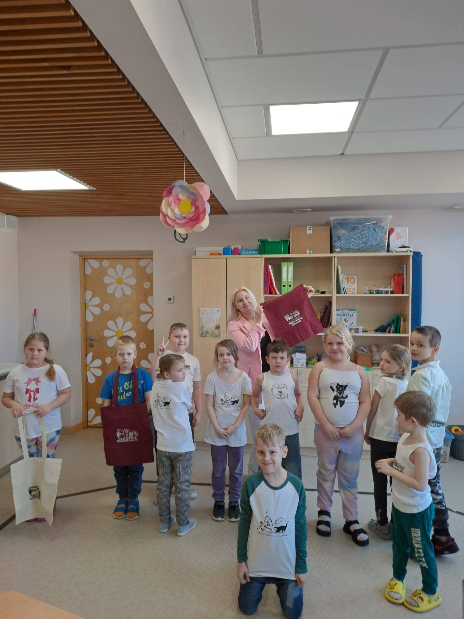 PII grupa “Saulespuķe” šodien devās uz muzeju, lai paši sev apdrukātu krekliņus un auduma maisiņus!